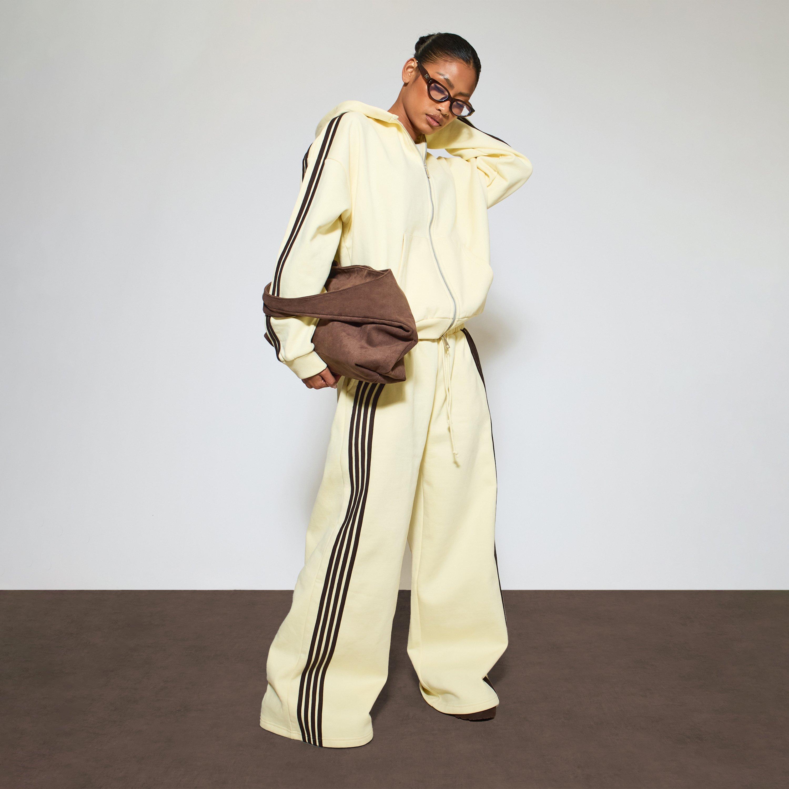 Your off-duty uniform just leveled up. Featuring yellow heavyweight material with contrast stripe detailing, these baggy joggers are a complete vibe. The mid-rise waist and wide-leg cut deliver that effortless streetwear aesthetic we are obsessed with.