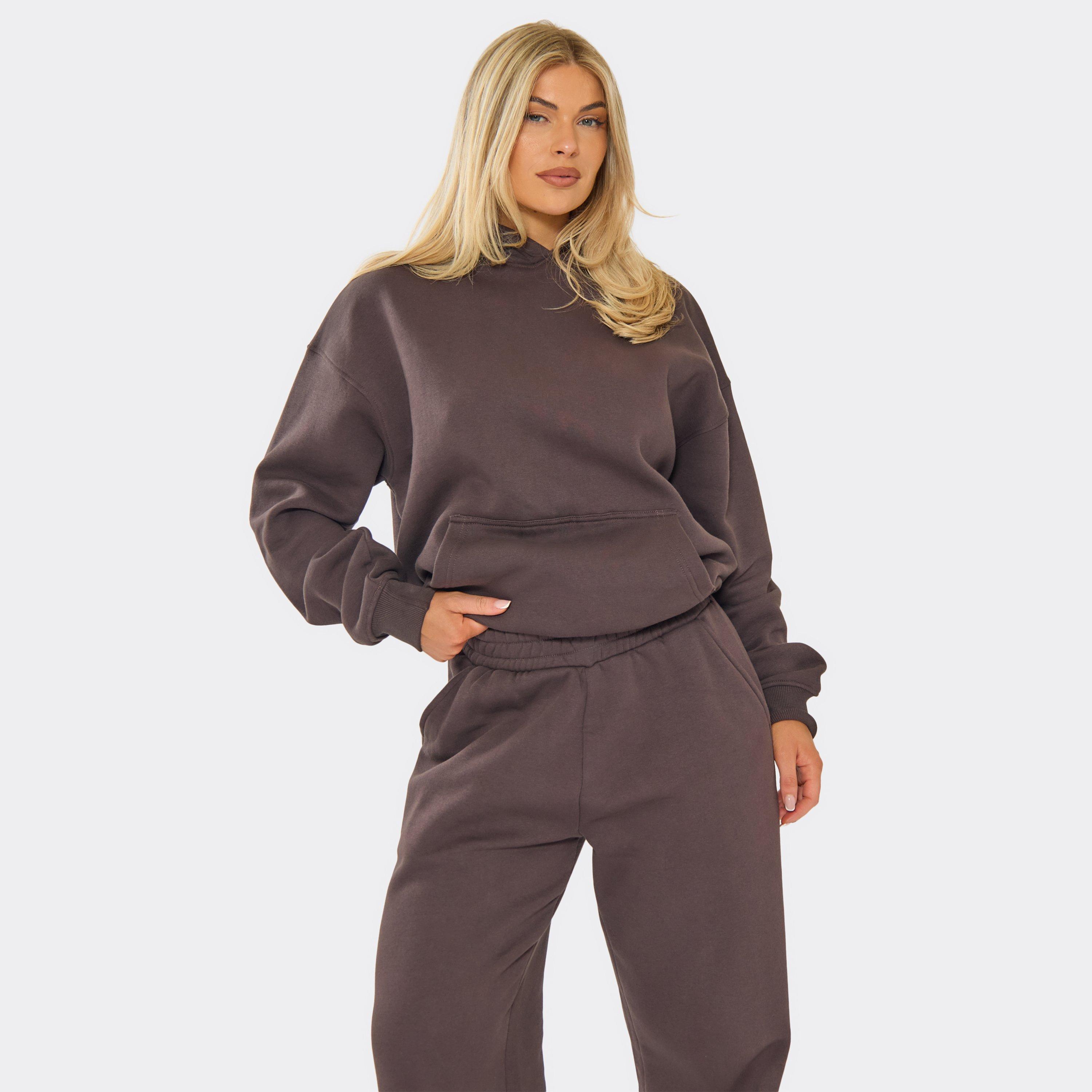 Laid-back, street-ready vibes. Featuring chocolate brown cotton material with oversized detailing, this long sleeve hoodie adds relaxed, cool-girl energy. Pair with wide leg joggers and trainers for an effortless off-duty look.
