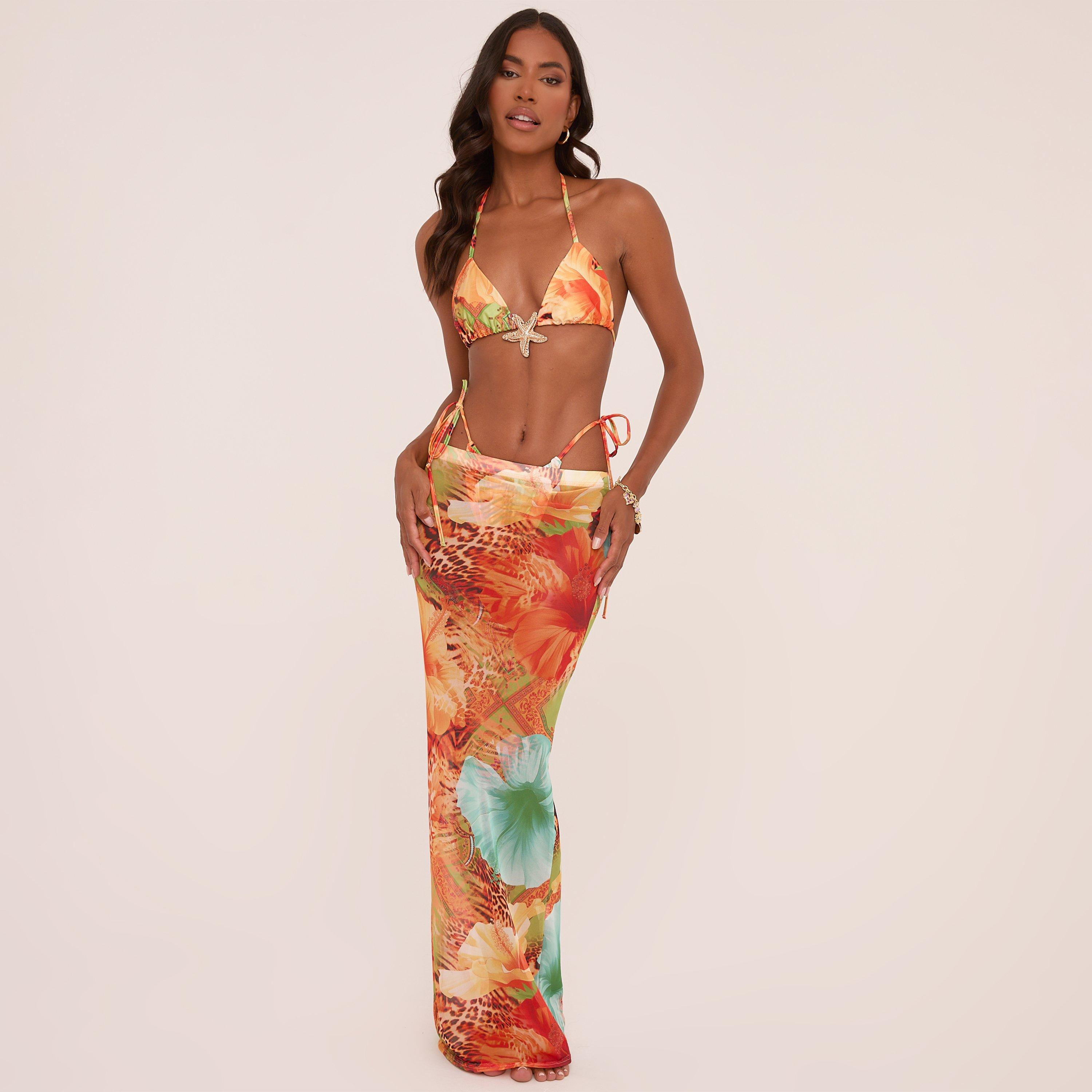 No ones outfit will compare to yours if you wear this unreal tropical dress doll. Featuring an orange tropical print material, a low rise fit and a maxi length.